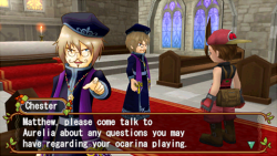 Bedingungen: Nur wenn Event 7-12 fehlgeschlagen ist, ihr habt die Okarina bei euch, Aurelia und Chester befinden sich in der Kirche