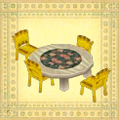 36 - Westlicher Tisch Rosenland, 2500G Verkaufspreis: 8500G Material: 10 Kleinholz, 8 Holz, 2 Topas |