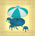 48 - Blauer Strandtisch Versendet 500.000G an Tropenland - Tropenland, 3800G Verkaufspreis: 3900G Material: 2 Blauer Alpaka-Stoff, 10 Kleinholz, 6 Holz |