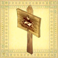 175 - Tafel mit Kuh-Bild Gewinnt Nutztiermesse, mindestens 5 Siege Verkaufspreis: 3200G Material: 7 Kleinholz, 20 Holz, 2 Alte Lehmpuppe |