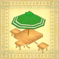 44 - Grüner Sonnenschirm-Tisch Versendet 300.000G an Hüttenland- Hüttenland, 3800G Verkaufspreis: 3900G Material: 3 Grüner Stoff, 10 Kleinholz, 6 Holz |