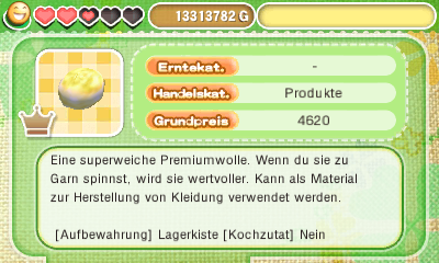 Bei dem Kochwettbewerb wird das Warenabzeichen für die Rezept-Kategorie wirksam (Suppen, Salate, usw.) und bei dem Modefest erhöht ihr den Wert der Wolle und den daraus gemachten Garnen, Stoffen, usw.