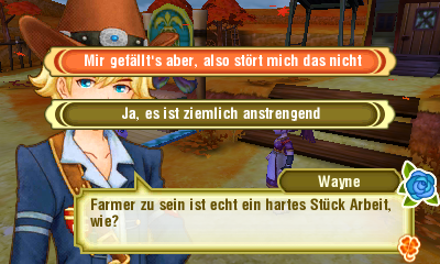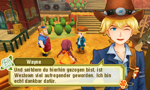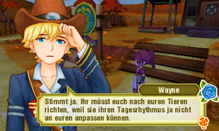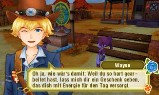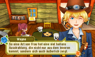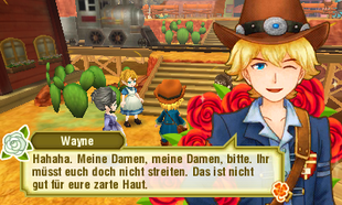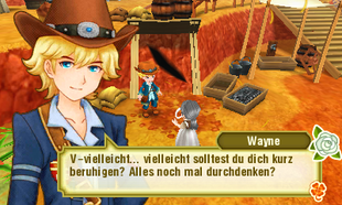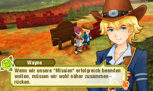 Wayne ist der örtliche Postbote und ein freundlicher junger Mann. Jedoch scheint er in seiner Umgebung nicht sehr beliebt zu sein, da er sich gerne einen Spaß daraus macht seine Mitmenschen auf den Arm zu nehmen. Wayne ist zu Beginn noch sehr traditionell eingestellt, denn er findet dass der Mann den ersten Schritt machen sollte. Dies ändert sich jedoch schnell als er auf euch trifft.